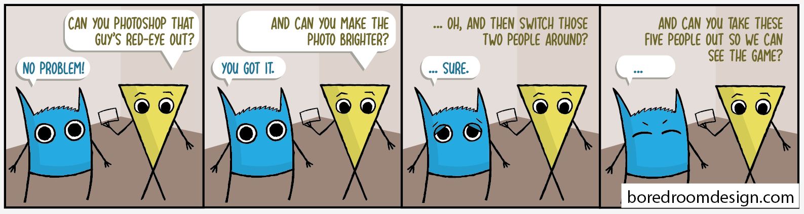 Bent Out of Shape is being developed as a web comic for graphic designers. I created the logo and initial character designs, as well as the concepts for several comic strips.